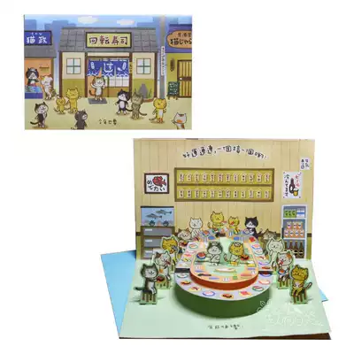 Taiwan cat revolving sushi three-dimensional birthday card Qianxi with the same food party blessing cartoon commemorative gift