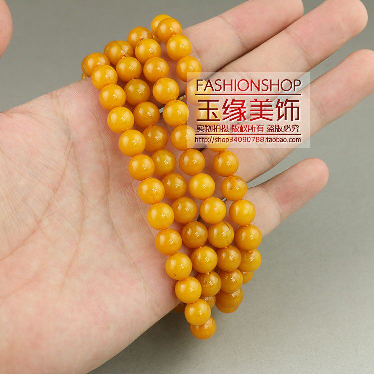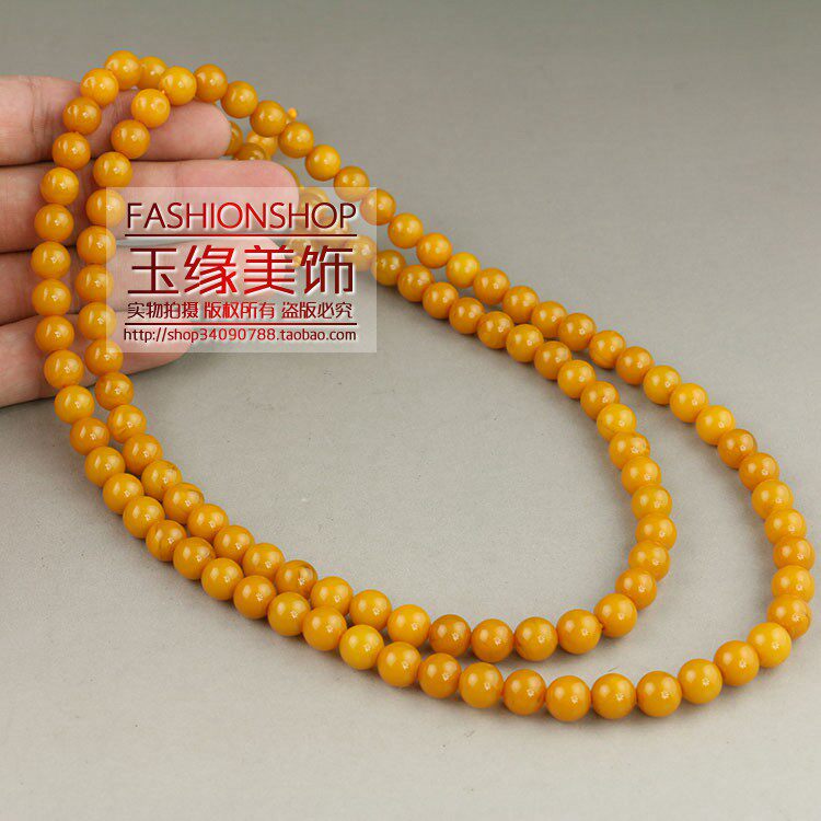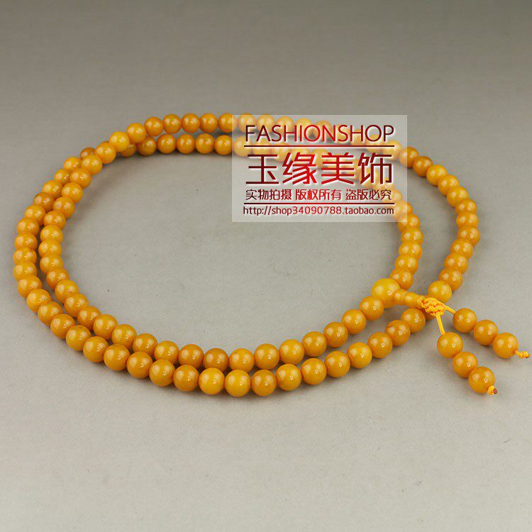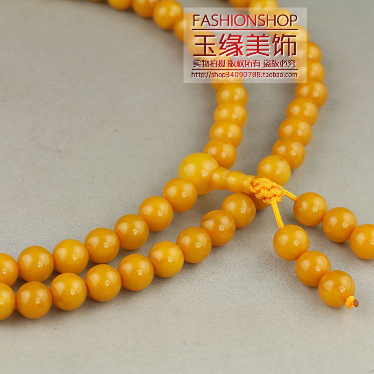 Synthetic resin imitation beeswax 108 beads Buddha beads bracelet necklace hand string dark yellow 8mm beads