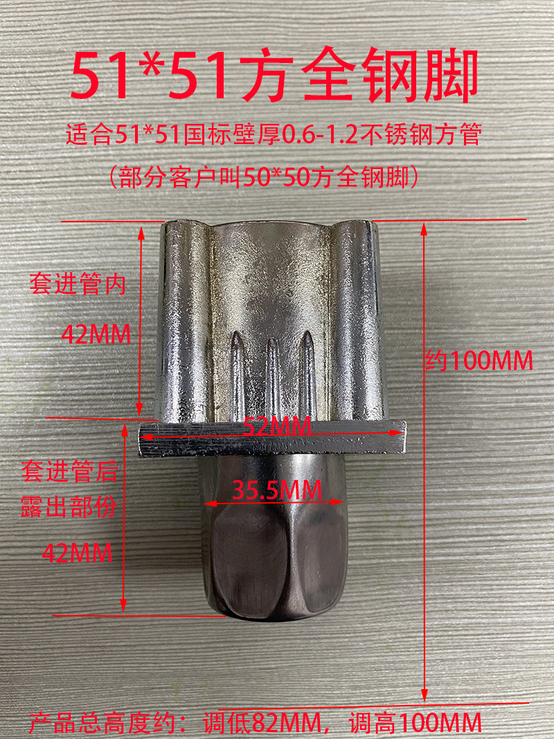 Stainless steel square aluminum bullet foot 51 square steel pipe all steel foot commercial stove stove shelf cabinet foot heavy adjustment feet