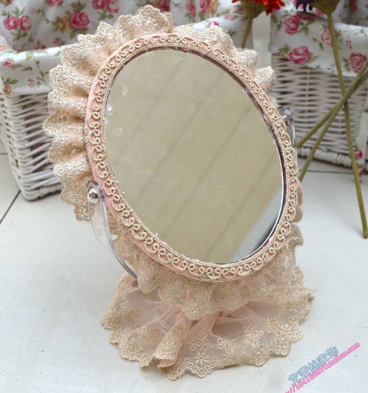 Lace Cloth Art Creativity Cute Bear Desktop Double-sided Mirror Cosmetic Mirror Sunglasses New Store Opening Punch Drilling Special Price