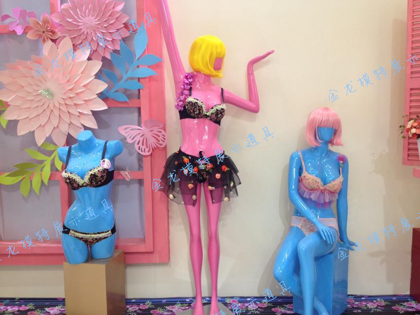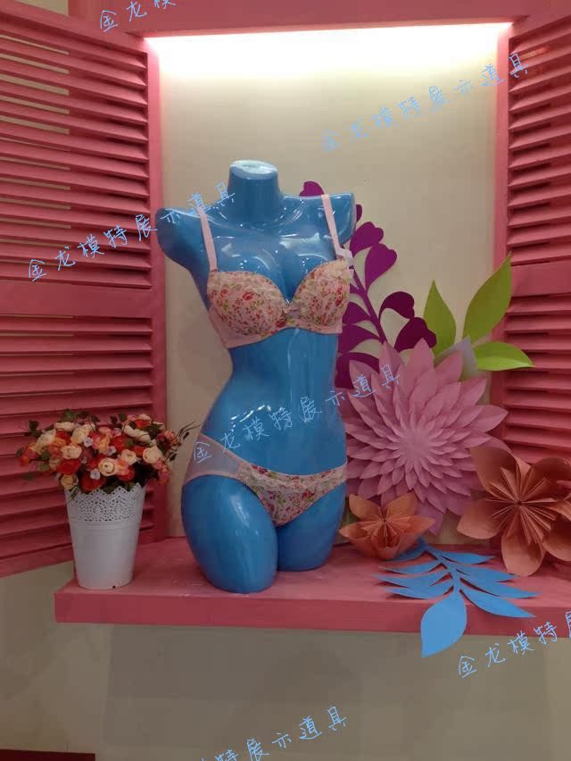 Pink and blue underwear half-length female model props color Eve show underwear bra female half-length model props