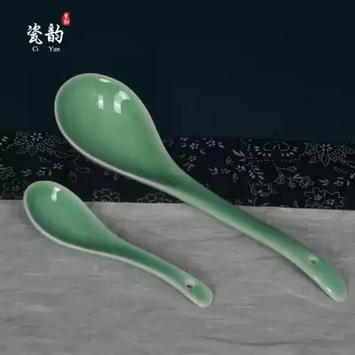 Celadon tableware set Plain noodles small spoon Spoon Soup spoon Ceramic Chinese retro rice spoon