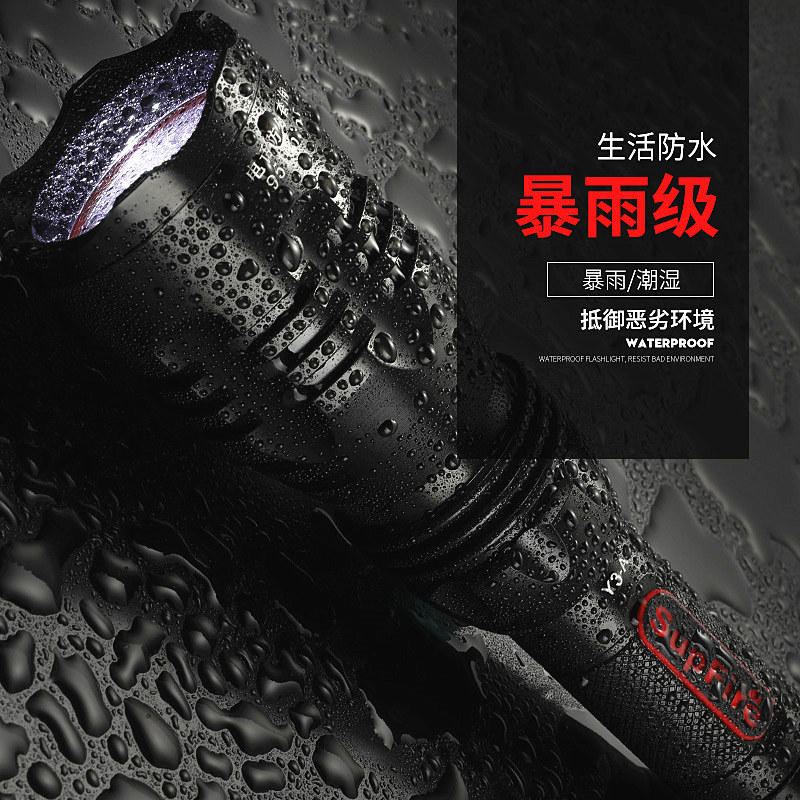 Super Fire God Fire Y3A Intense Light Flashlight Rechargeable Spotlight LED Telephoto King Car Charge Searchlight