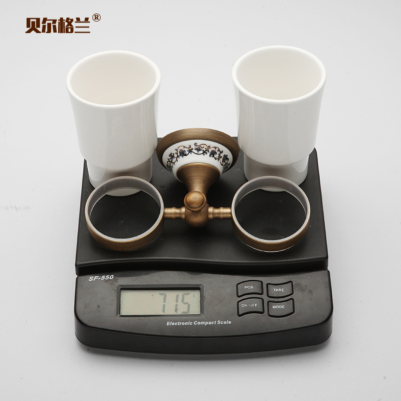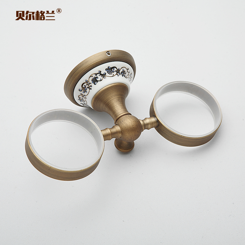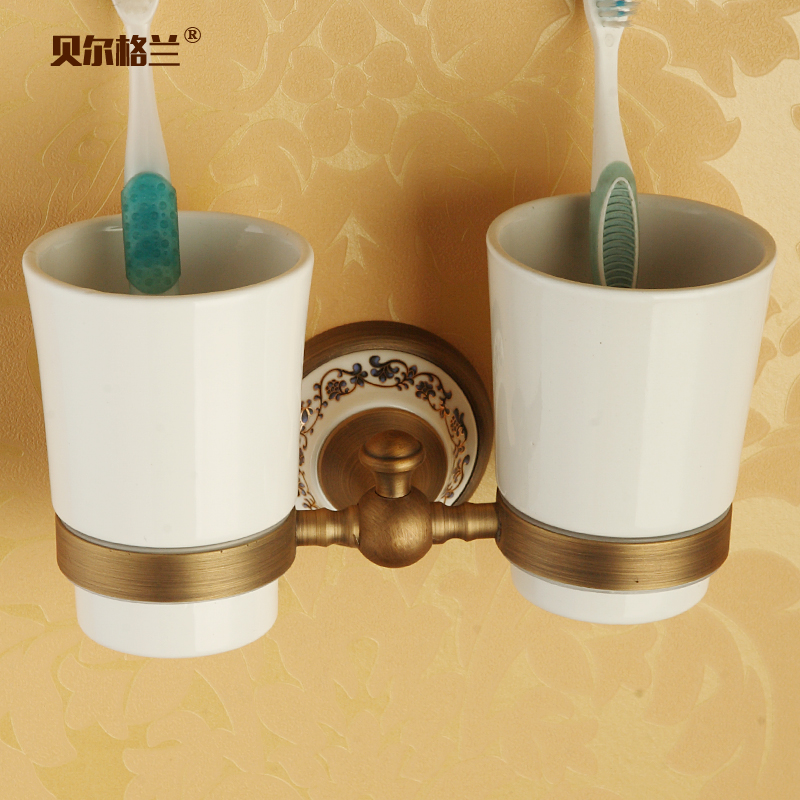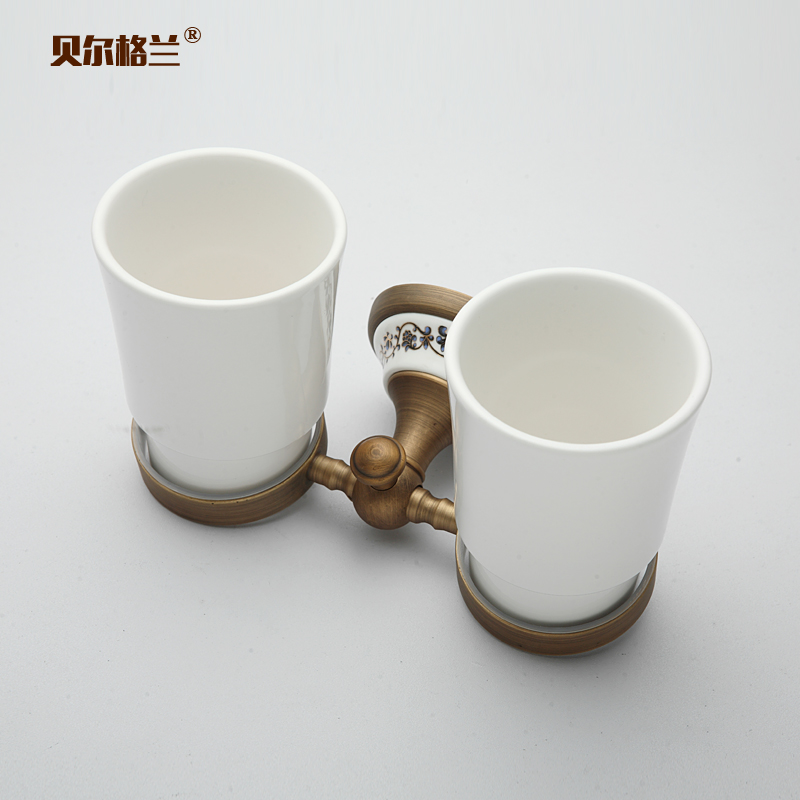 Green flower porcelain gargling double cup holder toothbrush cup holder ceramic gargling cup instead of glass bathroom suit toothbrushing cup