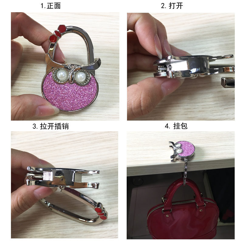 Send mother owl bag hook multi-color non-rust multi-functional creative desktop metal folding bag table side