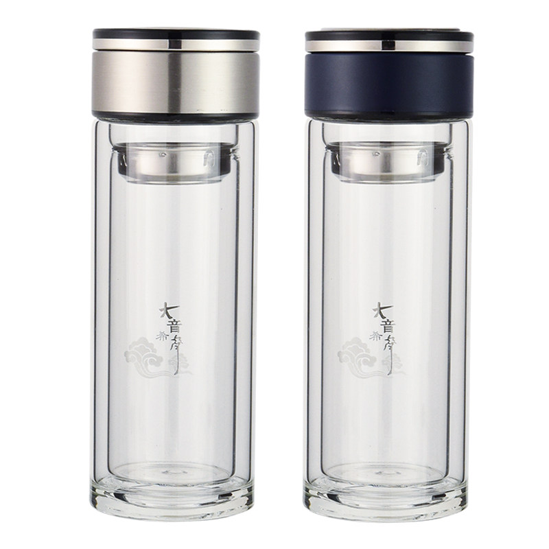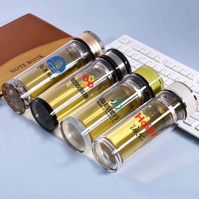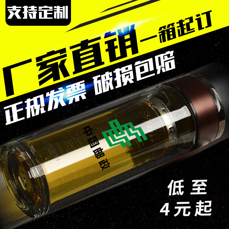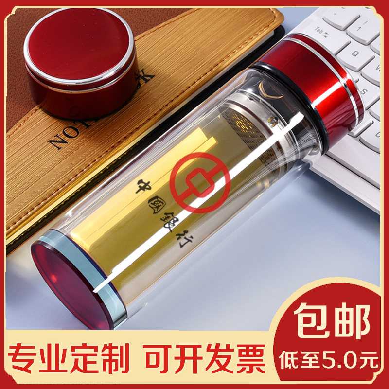 Custom double layer thickened fashion glass teacup large advertising gift cup custom logo print open giveaway cup