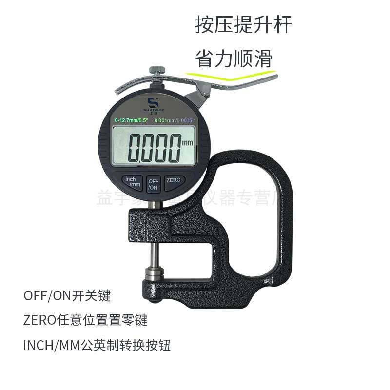 On-measure thousand-point thickness gauge 0-12 7mm0 001 paper film leather measurement electronic thickness gauge
