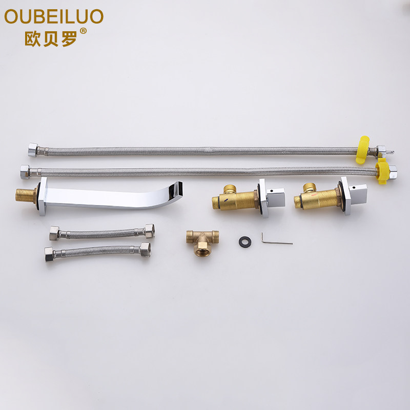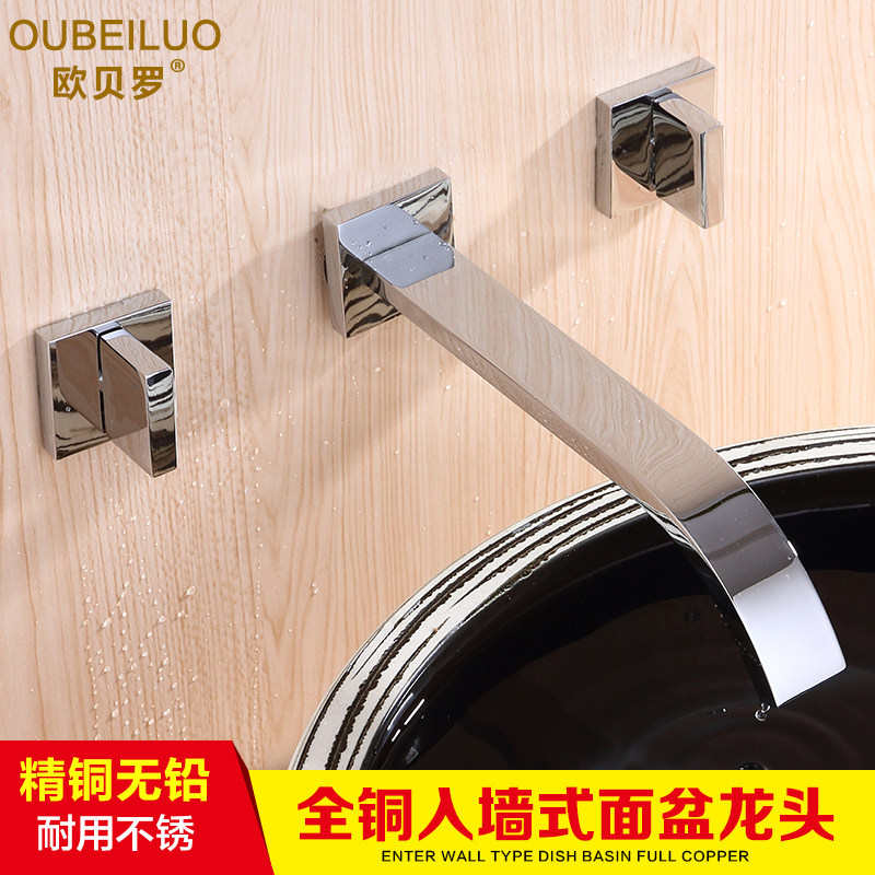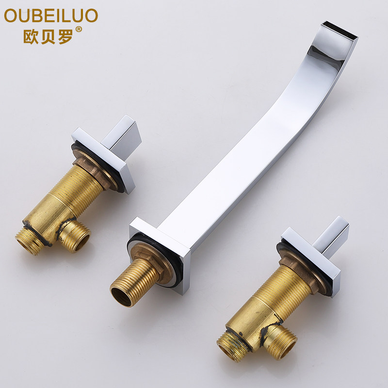Wall-in-wall concealed split face basin tap hot and cold double handle 3-hole bath cabinet faucet