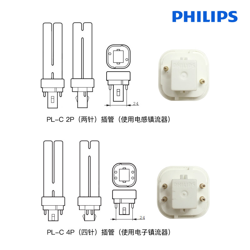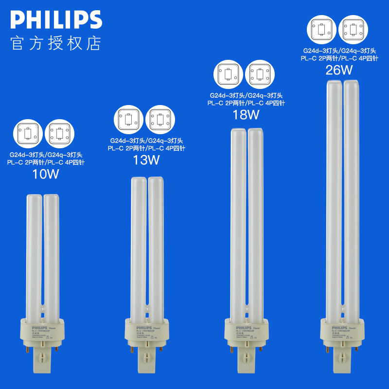 Philips energy-saving lamps compact separate plug-in tube PL-C10W13W18W26W2-pin 4-pin lamp 2P4P