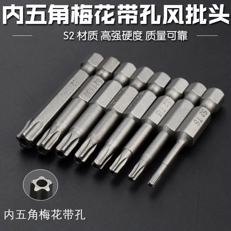 Inner five-star batch head Inner five-angle pneumatic screwdriver head Electric screwdriver head Electric drill screwdriver head with hole plum electric screwdriver head