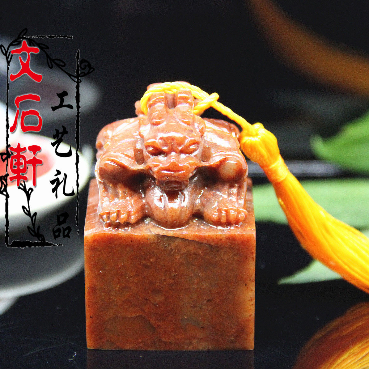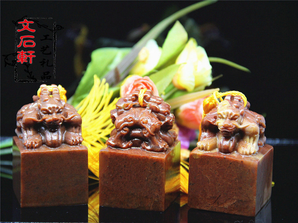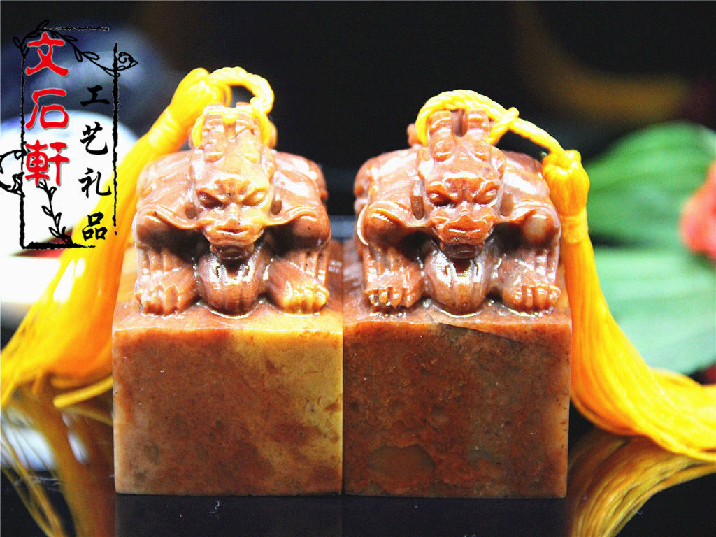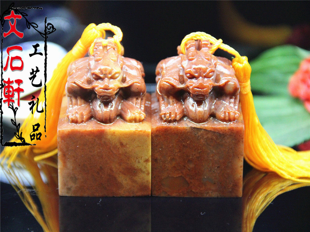 Boutique Shoushan stone color frozen double-headed ancient animal seal name calligraphy and painting idle chapter bag engraving pure handmade gold and stone seal carving