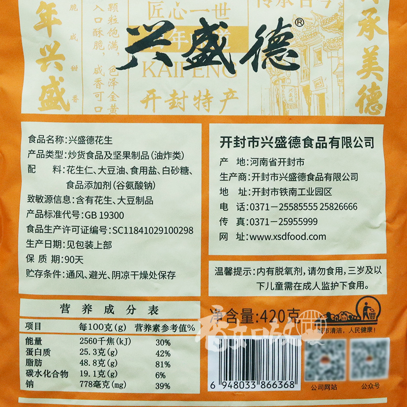 Henan Kaifeng specialty Xingshengde spiced peanut 420g wine and vegetables official authorization new date