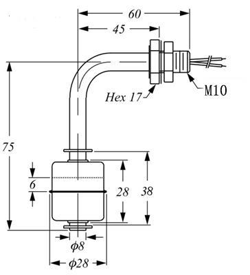 Small right angle stainless steel floating ball switch reed pipe floating ball liquid level switch water level controller side loading