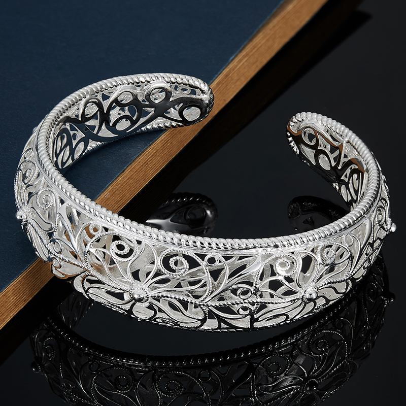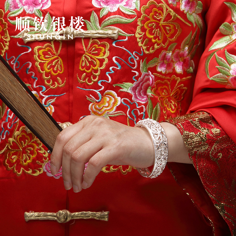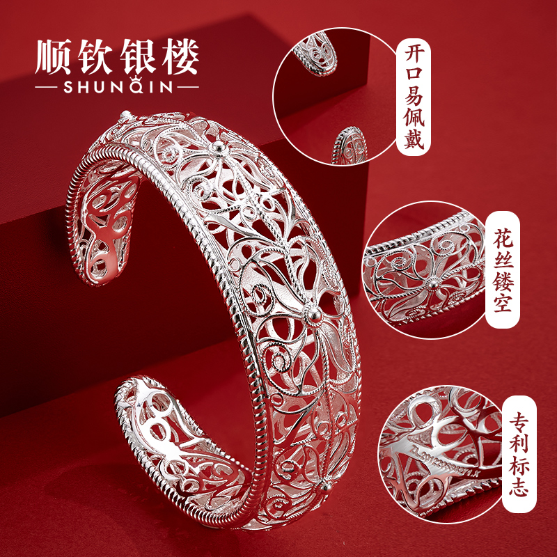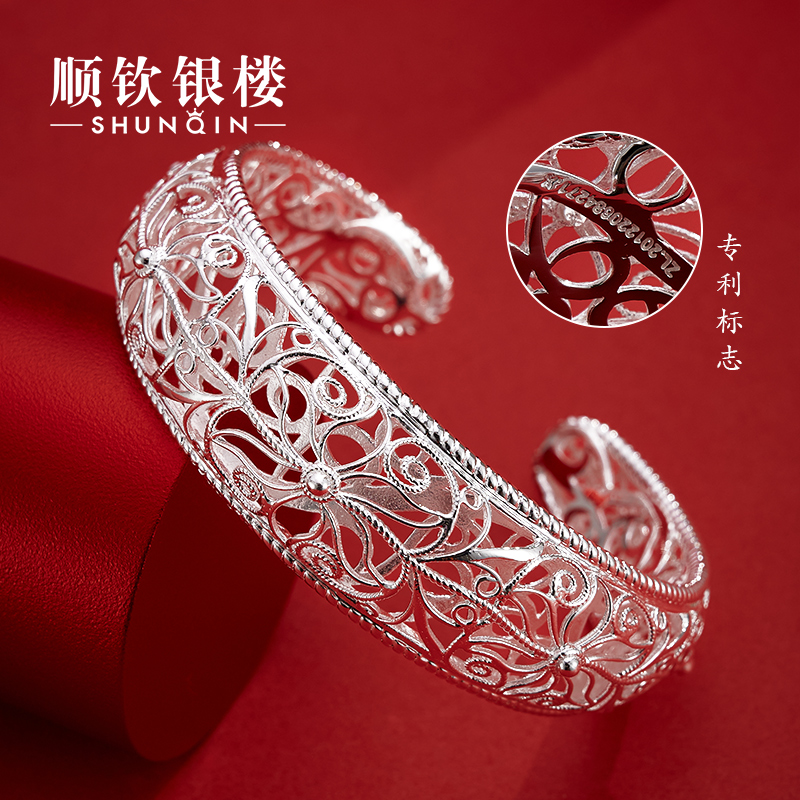 Shunqin silver Lou Huang Feida pure silver bracelet female palace hollow silver bracelet 990 foot silver bracelet Accessories Send elders