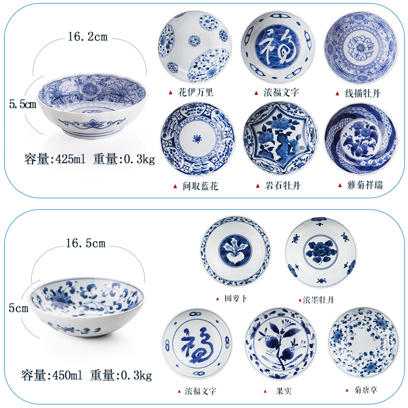 Blue Rindang bowl Japanese bowl bowl Pottery fun House Japan imported original ceramic bowl Ramen bowl Household soup bowl Large noodle bowl