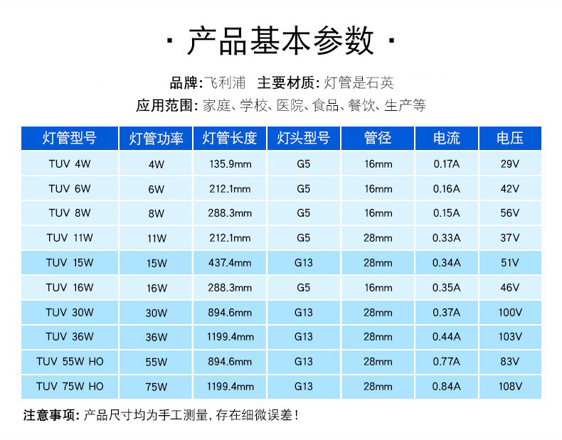 T5-4W TUV Philips imported lamp tube (135mm) T5-6W TUV Philips imported lamp tube (212mm) T5-8W TUV
