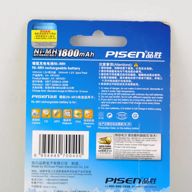 Pinsheng rechargeable battery No. 5 rechargeable battery 1800mAh AA rechargeable battery Ni-MH rechargeable battery 2 sections