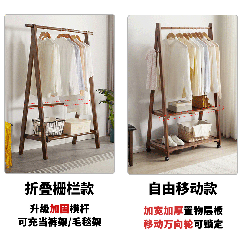 Coat rack Solid wood hanger Floor-to-ceiling bedroom simple storage hanger Simple modern clothes rack Household
