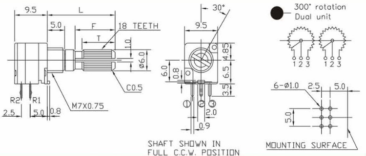 ALPHA or ALPS original 09 type B50KJ potentiometer Precision high volume potentiometer
