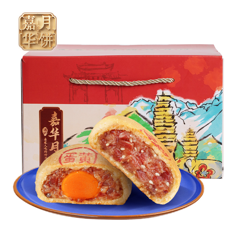 Jiahua Moon Cake Refined Xuanwei Ham Moon Cake * 5 Xuanwei Ham Egg Yolks Mooncakes * 5 Yunnan Snacks Special Produce Traditional Pastry Heart
