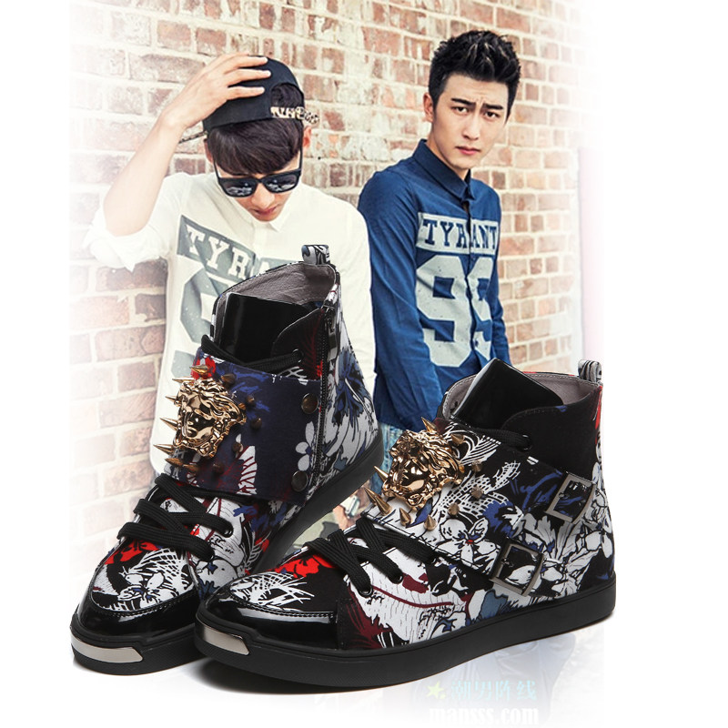 Spring and Autumn Tall Canvas Shoes Men's Korean Trend Gao Bang Cloth Shoes Rivet Sneakers Men's Shoes Tide Brand Casual Breathable Versatile