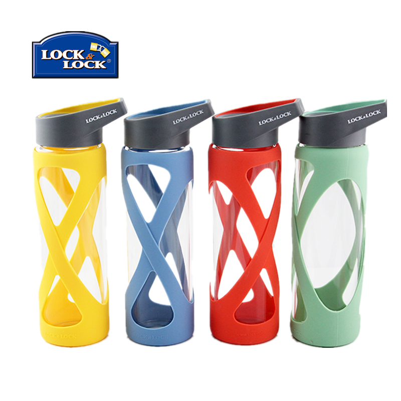 Lock Lock Heat Resistant Glass Water Cup Silicone Case Portable Creative Kettle LLG931 Free Cup Brush 510ml