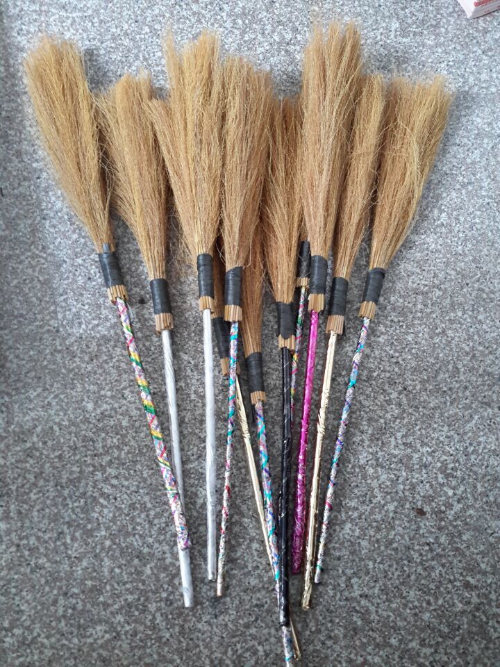 The Halloween broom sorcerer broom flies a celestial broom and sweeps the witch sweeping the wizard broom.
