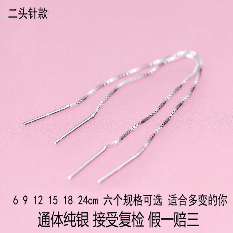 S925 pure silver streaming Sole with a long version of the ear chain Twin Needle Circle Temperament Woman South Korea Brief Earrings Earrings Sexier