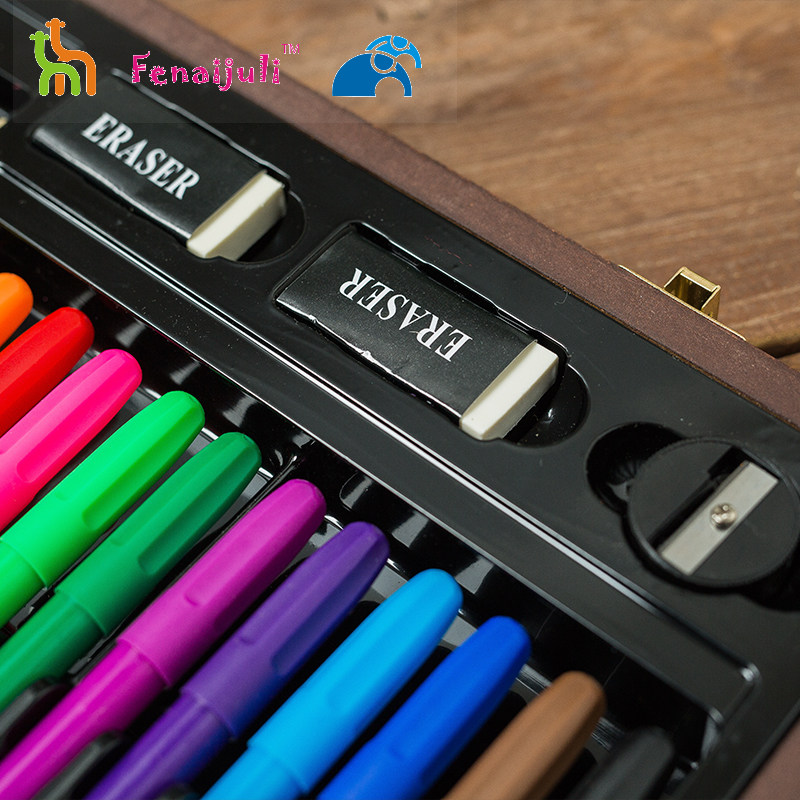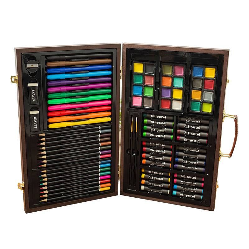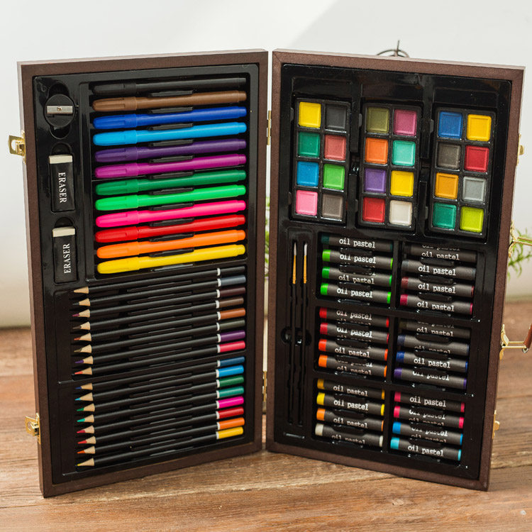 86 Pieces Children Learn Drawing Wood Boxes Painting Gift Sets Colored Pencil Crayons Fine Art Suit Drawing Tools Customize Logo