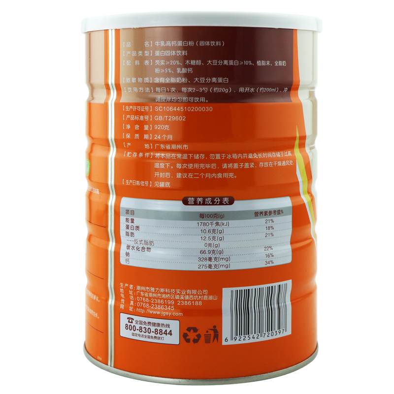 Yalice cow's milk high calcium protein powder Vegetable Oil Soybean Isolated Protein 920 gr Canned Two Cans