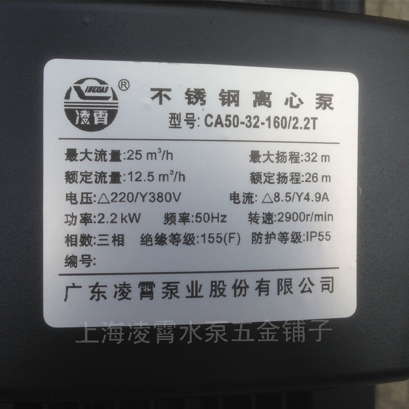Guangdong Lingxiao Water Pump Stainless Steel Pump Centrifugal Pump Booster Circulation Pump Sanitary CA50-32-160 2 2kw
