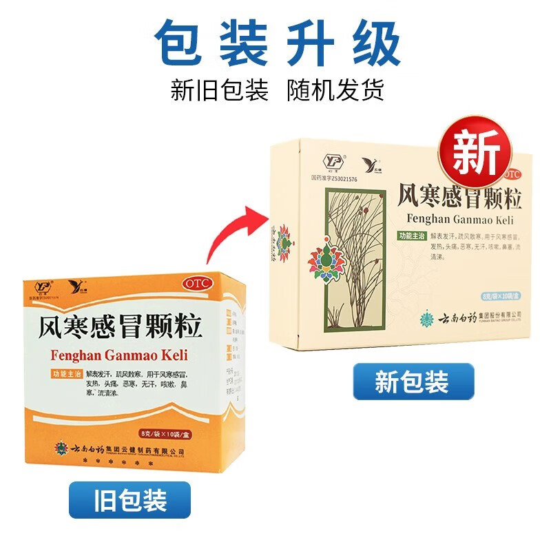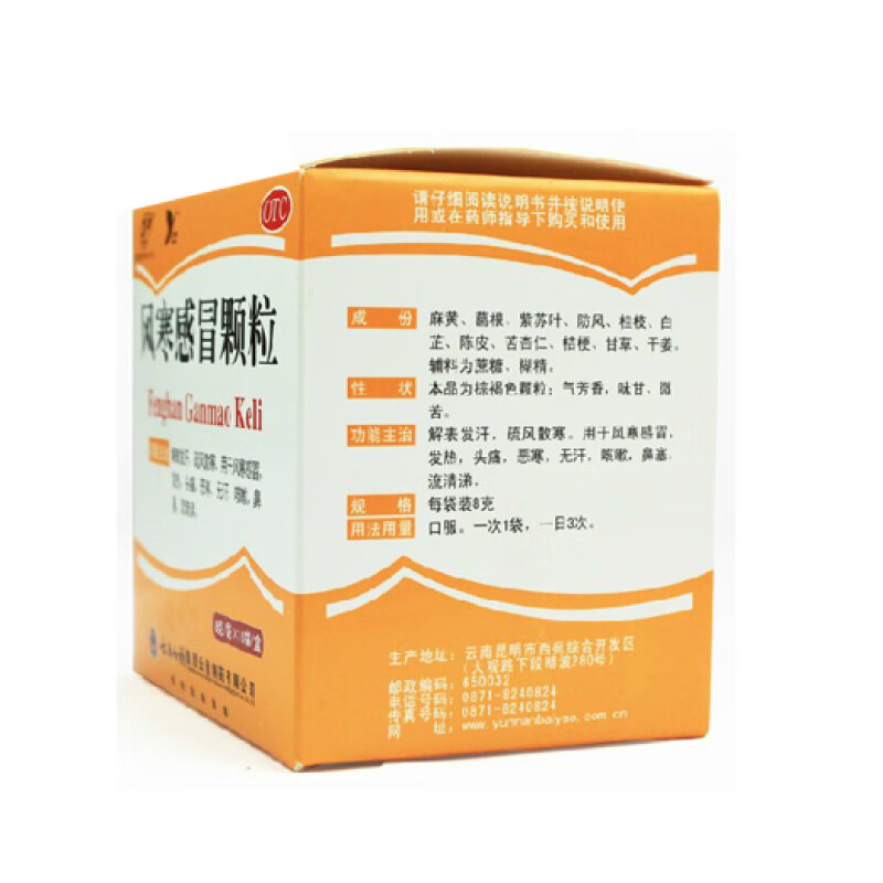 Yunnan Baiyao Fenghanmao Granules 8g*10 bags to dispel wind, dispel cold, relieve symptoms, fever, headache, stuffy nose, runny nose and cough