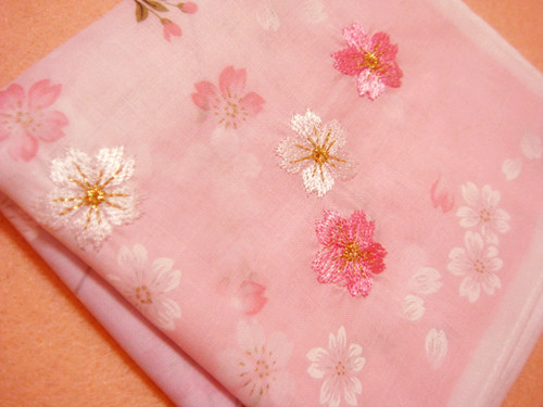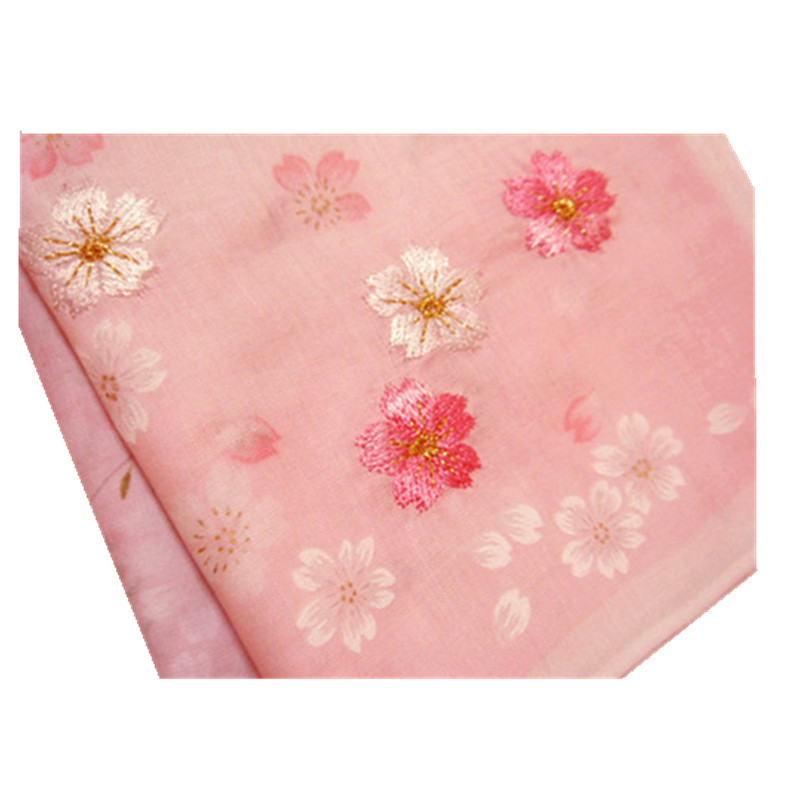 Japanese-made Yuzen embroidered handkerchief Yamamoto Ren cotton embroidered soft ladies cherry blossom handkerchief recommended