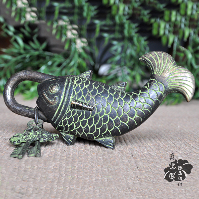 Antique bronze lock Nepal handmade polychaise tortoise male lion owl years old lock chaise lock large