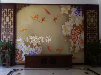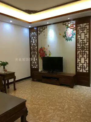 Living room Chinese pine TV background wall screen grille hollow wooden lattice background partition hollow screen grille