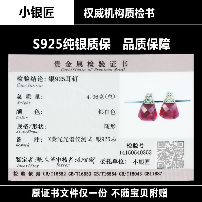Small silversmith pure silver ear nail female natural red corundum temperament superior red section crystal earrings earrings earrings