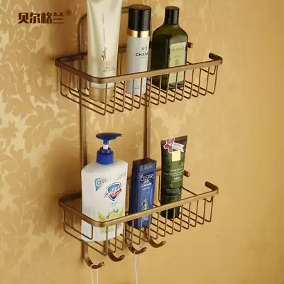 All-copper antique double-layer mesh basket Bathroom shower room shelf Mesh basket with hook