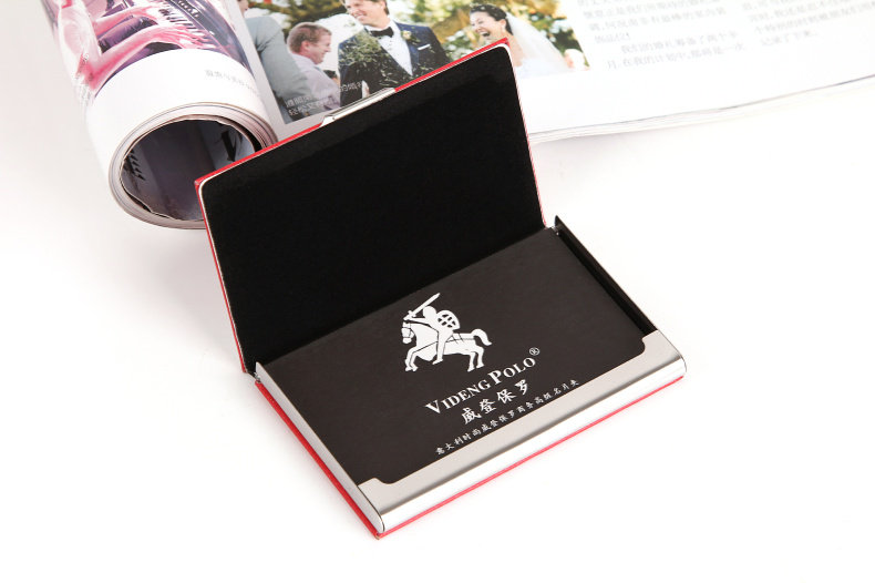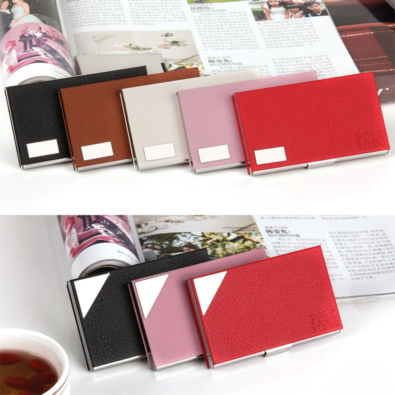 Official Polo business high-grade business card box Men's business card holder Men's Women fashion creative stainless steel business card holder Card storage box Card box free lettering(special offer)