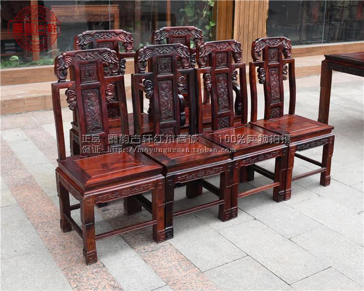 Laos red rosewood elephant head dining table and chairs seven-piece set combination Cochin rosewood dining room mahogany furniture