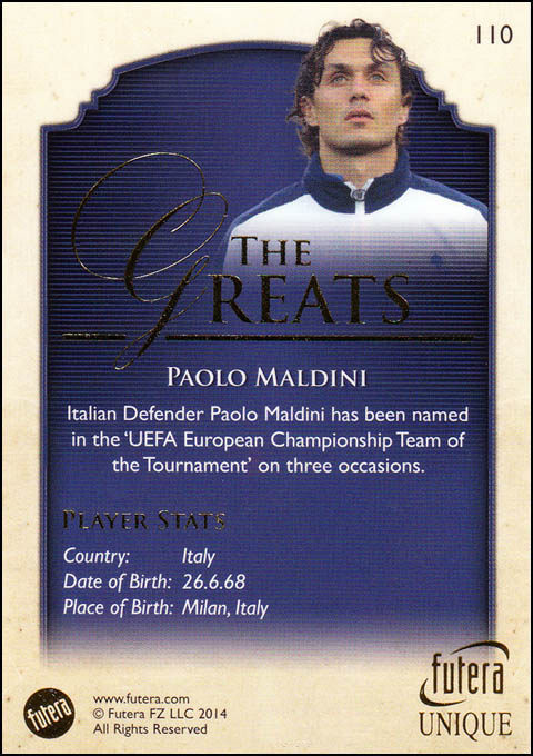 Fotra Futera2014 star card 110 ultra-thick Puka Paolo Maldini Martini-Taobao