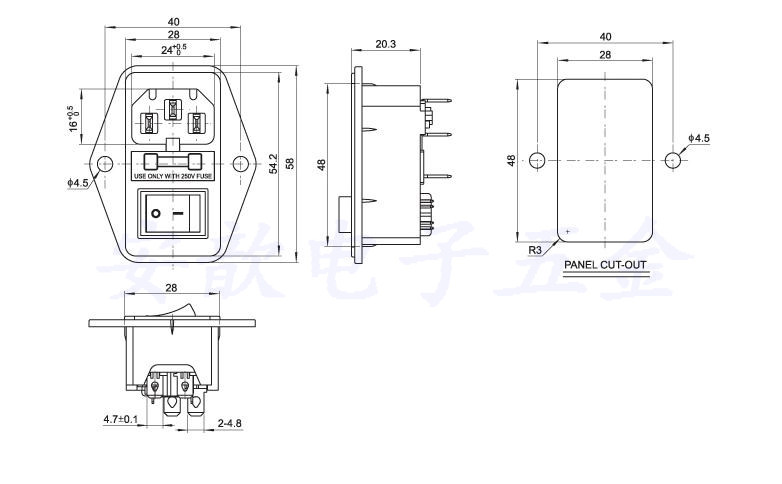 Pindword (with fuse with lamp red switch) character (with fuse no lamp black switch) character (with fuse only)