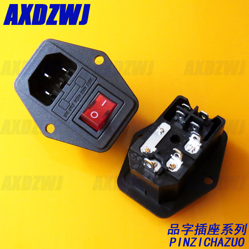 AC Power Socket Pint Character Socket Plug With Fuse Belt Lamp Red Switch Electric Cooker Triple Hole Computer Plug