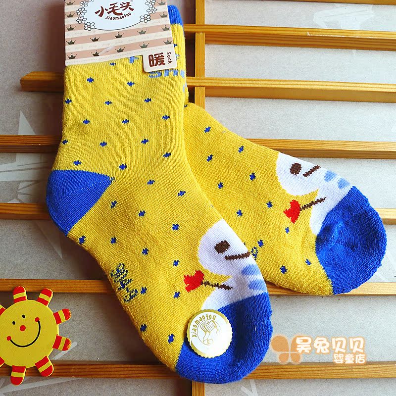 Six pairs of small wool head baby socks baby children's socks pure cotton thickened terry warm socks autumn and winter loose mouth socks