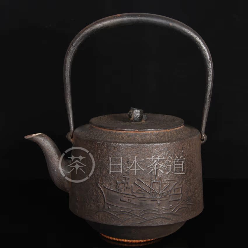 O Japanese Tea Ceremony Art Japanese Old Iron Pot 1979 Ship Pattern Commemorative Iron Pot Southern Japan Old Iron Pot Bottle