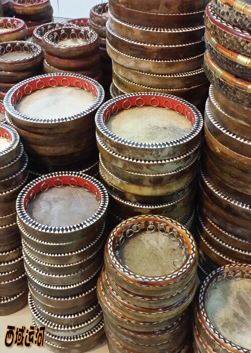 Xinjiang ethnic hand drum instrumental figures Painted Bull Leather made dance performance Props Dining Hall Hotel Decoration