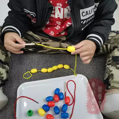 Rope with wooden sticks Children Beaded Toys Early Education Center Wooden Beaded Animal Fruit Beaded Wire Rope