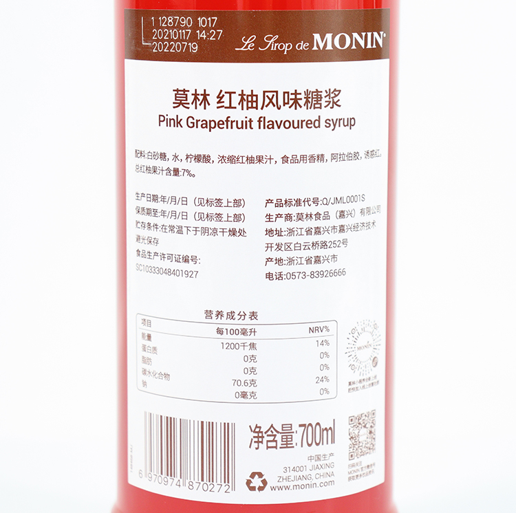 MONIN Red Grapefruit Syrup Sherbet Grapefruit Syrup Cocktail 700Ml