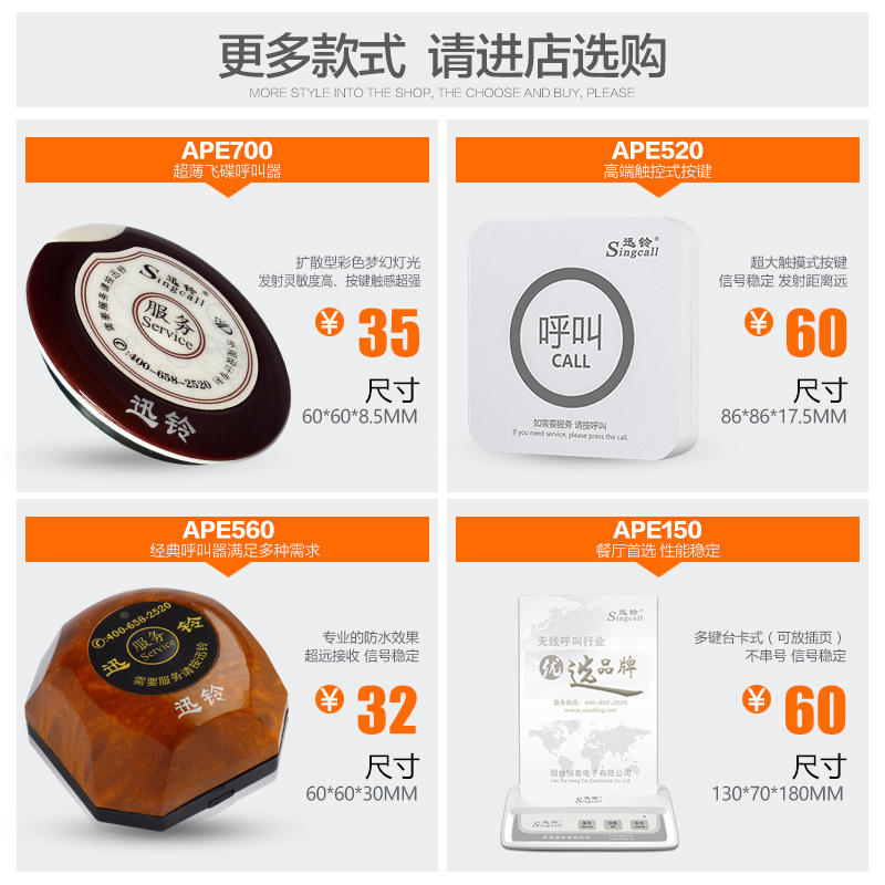 Xunling wireless caller Teahouse dining room Hotel system Ring room machine Box call Hotel catering unlimited call point Table table card set service Lingxunling service bell light
