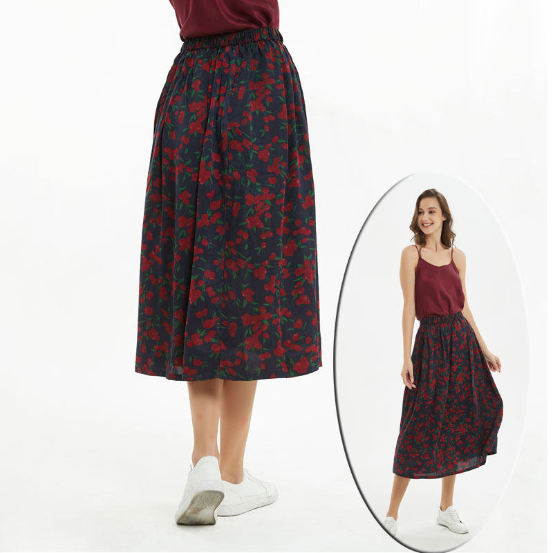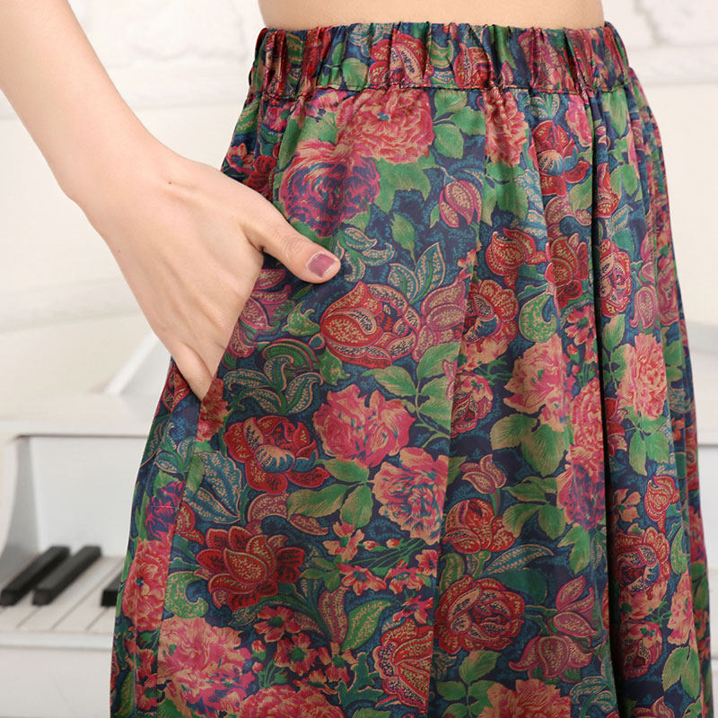 Retro wind hits 100% mulberry silk fragrant cloud yarn half body dress printed A word satin true silk large pendulum skirt long dress