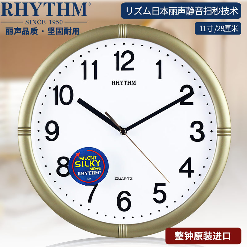 RHYTHM Li Sheng watch wall clock living room study 10-inch European modern simple gold small wall clock CMG839